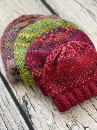 Mosswood Lane hat is a beanie style or sometimes called a toque. It has a double brim which can be left down for a taller, slouchy style or folded over to be more fitted. It is the perfect knit for busy knitters who are juggling a job, home, and family. You want something you don’t need to concentrate on too much in the evenings as you don’t have much mind space left at the end of the day. But the inclusion of a variegated yarn creates interest and still makes it an addictive knit. This is the chunky version, so it will knit up quite quickly. This makes it perfect for last minute gifts too.