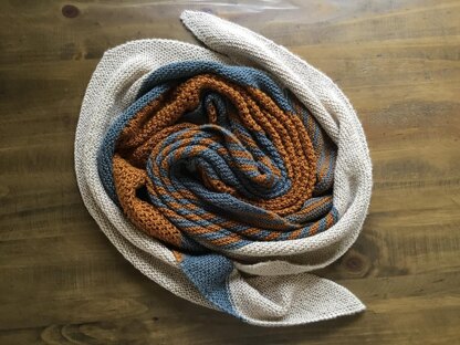 The Mostly Garter Shawl, is knit on the bias, this shawl has beautiful drape. Knit mostly in garter stitch, it’s an easy pattern, perfect for a beginner. The eyelet and stripe section adds a little pop of detail.