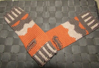 The natural earthy colours in these gloves and the curved shapes represent the colours of the earth and rolling hills of my Father’s Country. My Father was a proud Gulidjian man and her has passed his love of country down to me. Please note there is a right and left glove so don't make two the same.