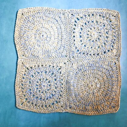 This simple pet blanket is made by alternating two variations on a square motif. Worked in the round, this pattern uses two strands of yarn held together to work up faster and to create unique, tweedy color combinations.