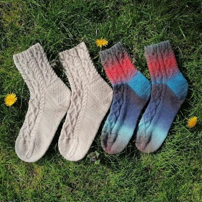 Mountain Creek socks are worked from the cuff down, they’re both the same.
