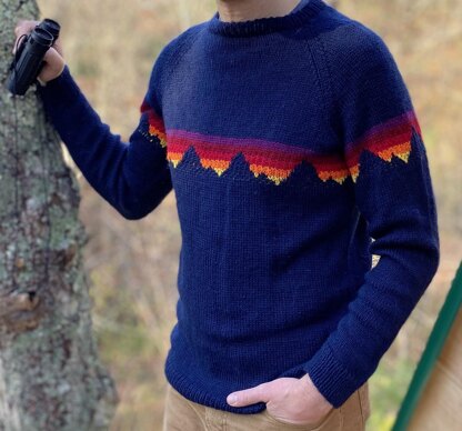 This fun and easy to knit unisex sweater is reminiscent of surfing and skateboarding styles of the eighties. The sleeves are knit ahead and then joined to the torso for an easy finish and flexible fit. It is worked bottom up and features a simple intarsia section across the chest and arms.