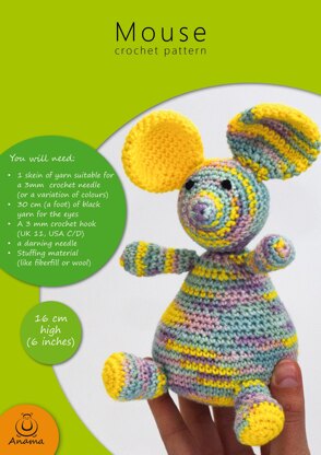 This mouse is perhaps the sweetest animal in the Anama family. With this pattern you will make many people smile with mice in every colour of the rainbow. They are great to lift your own spirits, but also the best present to make someone else smile. Or pick colours that match a birth announcement or nursery for a personalized baby gift.