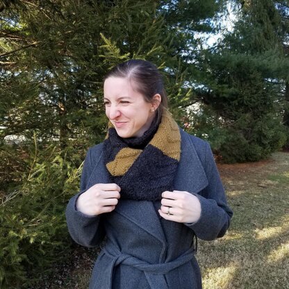 The cowl is worked flat and then the ends are seamed together. It is long enough to be wrapped twice but can also be left unseamed and worn as a scarf.