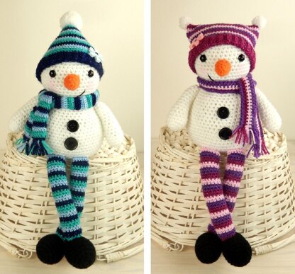 These dolls are ideal as shelf sitters for your Christmas/winter display, or as cuddly toys for gifting. Mr & Mrs Snow are very quick to crochet as their bodies are made by using doubled up yarn. Leave the legs off entirely and you can use them as doorstops too! Included in the pattern is a little drawstring Christmas tree purse to complete the ensemble. You have the option of attaching the gift bag to the doll and filling with candy, coins or other small presents to make a fun gift extra special. If you prefer, the purse can also be filled with toy stuffing to make a pretty ornament.