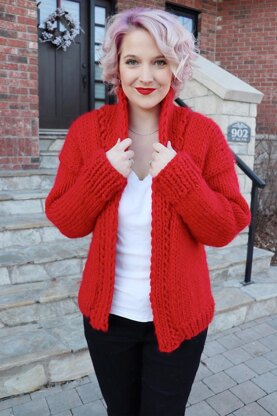 This cardigan is worked flat for the entire body until you reach the armpits. From there it’s split into three sections (right front panel, middle back, and left front panel). Once finished the body you will use the three needle bind off to seam up the shoulders, pick up the sleeves and work the arms in the round. Finally you will work the collar.