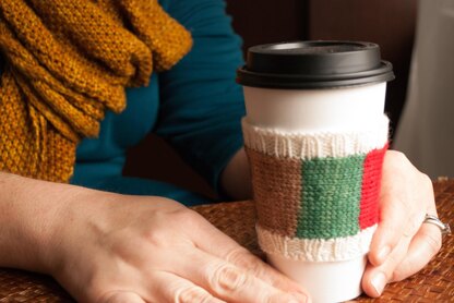 Mug Snug is the perfect way to use up a little bit of leftover striping sock yarn while creating something useful and giftable. With just 20 yards of a main color and 10 of a contrasting color and a few hours of your crafting time, you can make your own.