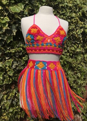 SKIRT Actual waist measurements: 62.25cm/24.5", 73.5cm/29" Length: 42cm/16.5" DK yarn in assorted colours: 240 metres/263 yards, 680 metres/300 yards