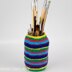 This fun decorative cosy will brighten up your workspace and put your leftover yarn to good use. It is easy to personalise to your own creative taste (I like lots of bright stripes).