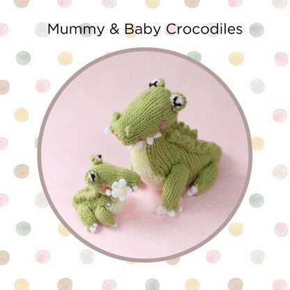 All parts are knitted flat and sewn up at the end. I used 4-ply (fingering) weight yarn but it is possible to work with DK (8-ply) yarn with slightly larger needles. The crochet hook is for making chains. It does not need to be precisely 3mm. it is used to make a flower. The flower is made with easy chains. To work the details as teeth and embroideries, use chenille needles with a sharp point. Finished size: Mummy; 11cm tall, 14cm long, Baby; 6cm tall, 7cm long 10 pages