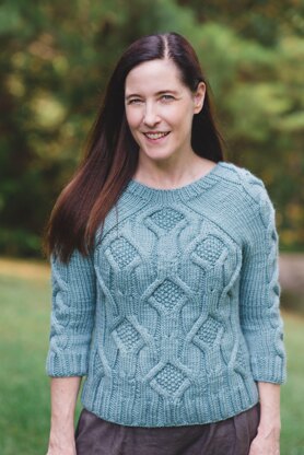 Sometimes you just need some big juicy cables!! That is what Murray is all about. The interesting yoke shape, the chunky yarn and the cables all make for a very fun knit! I used Ikigai Fiber Chibi Paka Chunky for the sample. It is a new yarn by Pam Powers and is fabulous to knit with, so soft with great stitch definition. And the color palette is very pleasing to the eye!