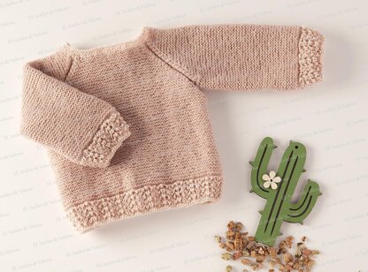 Product for digital download containing the instructions to make a wool and pearl sweater for a newborn baby, knitted in powder pink. The instructions include the description of all the materials required to make the garment and the needle size used.