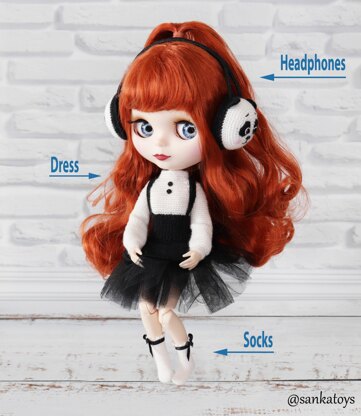 Music Panda outfit for Blythe doll