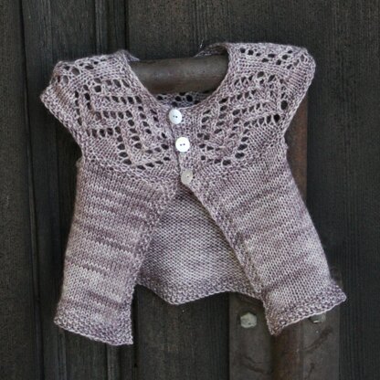 Muti Lynn has a vintage feel to it and will become an heirloom piece to be handed down from baby to baby. Top down construction, with a 3 button closer. This is designed with positive ease, so there will be room to grow into a tunic. Suitable for Fingering or Sport.