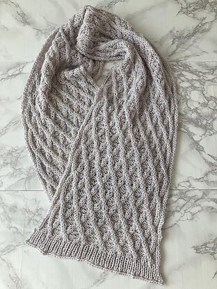 My diamond scarf is a rectangle scarf with a diamond stitch. Once you know the repeat, you can work it as mindless knitting. Size is adjustable as you like. It is good for the leftover project.