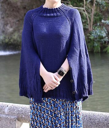 My hybrid sweater has 2 faces. One is as a simple sweater and the other is as a poncho with the sleeve slit. I love wearing poncho but I didn’t like the body climbs up when moving arms. So here’s the solution. This pattern is worked from the top down and worked in the round for the body. When we work the rest of the sleeves after dividing body and sleeves, we work flat adding some stitches for the button bands. You can close all the buttons to wear as a sweater, open them to wear as a poncho, partial open to avoid the cold wind, etc.