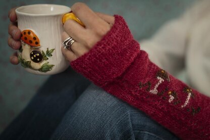 Luxury yarn and simple stitches become pretty, retro wristlets with a little bit of cross stitch.