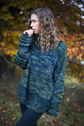 Soft and relaxed sweater knitted in Malabrigo Merino Worsted - finest Uruguayan merino wool, hand-dyed in a deep blue-green dreamy color...