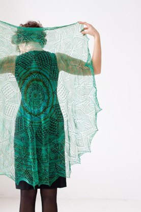 Mystic Star is a circular shawl which draws its inspiration from the starry night sky. The pattern includes a circular and a semicircular version of the shawl.
