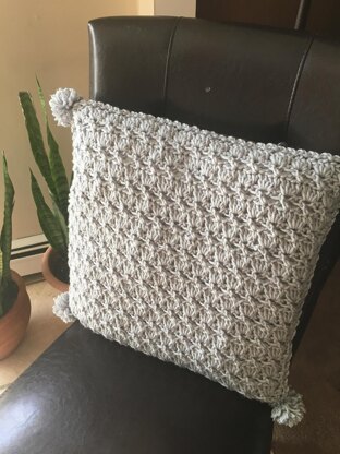 Directions given for 2 skeins of Bulky with a K hook, OR 3 skeins of Aran with an I hook. 16 1/2" Square to fit 18" pillow form.