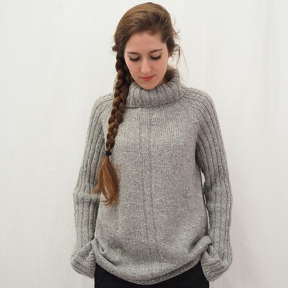 The naveen sweater is worked seamless from the top down, with short rows for neck shaping and raglan increases. The collar and sleeves are worked in ribbing k3, p2 and also a small band on front and back. The neckline and the curved back are shaped by german short rows.