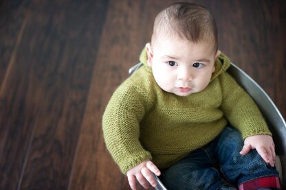 This hooded pullover is knit in the round from the top down. The pocket is added by knitting onto waste yarn, then picking up stitches and kniting in the round when the body is complete. The hood is picked up at the neckline and grafted on the top. This fun pattern can be made in a variety of colors for boys or girls. Consider using a luxury yarn for a heirloom baby gift!