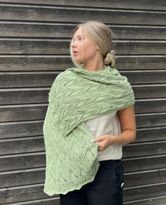 Nellie shawl is worked in 2 similar pieces, in a lovely lace pattern. To finish you will join the 2 pieces in the center by knitting the pieces together. You can easily make the shawl longer or shorter.