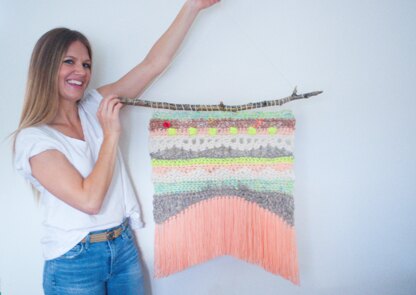 Add a whole lot of style to your home decor while using up stash yarn with this modern crochet tapestry pattern! I use super bulky weight yarn and multiple strands of aran + DK weights held together to bring you a unique and fun wall hanging! Each yarn that I used and how many strands is mentioned in the PDF. I used: slip stitch, single crochet, half double crochet, double crochet, treble crochet, bobble stitch, spike stitch, double treble crochet and triple treble crochet in this pattern. Written and video tutorials for all the stitches are included as well as a full, step by step video to help you along the way!
