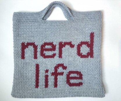 The Nerd Life Tote Bag is perfect for carrying around laptops, books, and everything else you need! It’s worked flat in two pieces, seamed, and then finished in the round, and it features a stranded tapestry crochet design.