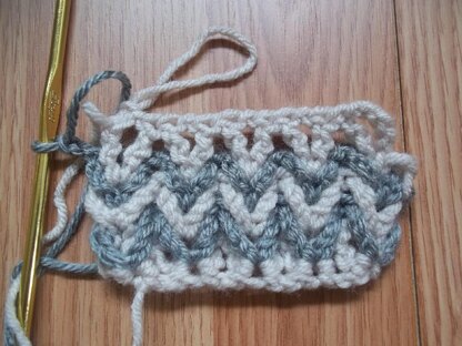 This is a very unique pattern stitch that uses V-Stitches to create a colored ripple and chunky knit look. The technique I use enables you to change colors every row without the need of fastening off and having a million ends to weave in. This creates a stretchy and thick fabric perfect for blankets and winter accessories.