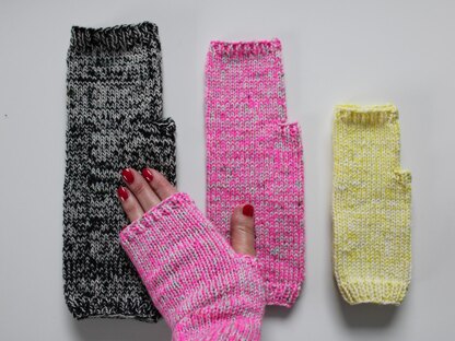 These mitts are worked with 2 strands of fingering weight yarn or sock yarn 4ply. The pattern is inspired by the colorful houses of the Neustadt in Dresden. You can wear these mitts with RS or WS in front.