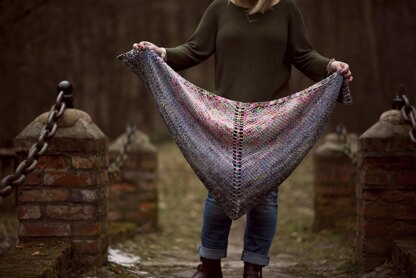 Actually this shawl is also my Valentine gift for my Hubby, who creates really cool colors but doesn’t knit (good enough) to showcase them well. I went into his studio, grabbed three skeins and made the easiest shawl ever to show him how pretty his yarns are :)