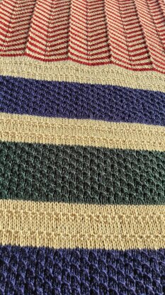 This sport weight, rectangle wrap, features an eye-catching chevron through the middle for draping over the shoulders or forming around the neckline, which is framed by textured contrasting bands. Uplift any outfit with this striking piece.