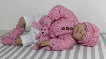 This is my New Baby Matinee Coat, Booties, Beehive Turban and Toy Bunny knitting pattern.This is a beautiful set to make for any newborn baby. Its worked flat in any dk yarn of your choice. Why not choose something special for your new arrival. The knitting pattern contains full instructions to make this entire set in 4 newborn baby sizes: XS (preemie 3-5 lb), S (small 5-7 lb), M (average 7-9 lb) & XL (large 9-11lb) and there are lots of step by step photos to help you throughout.
