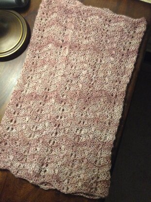 The stitch pattern is based off of the "New Shale" pattern in the book Traditional Knitted Lace Shawls, by Martha Waterman.
