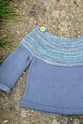 Construction and techniques Bottom up and seamless in the round. At the neck shaping the yoke is worked back and forth to create an extra opening to be buttoned up. My sample has a very simple crochet loop button hole and crochet edge to the neck slit (link to tutorial provided), but this is optional and you can create a knitted or other button hole/fastening arrangement if you prefer.