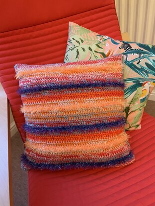 A stunning striped cushion cover pattern which will update a tired cushion, adding some brightness and a touch of sparkle into your home for the new year. Inspired by the sparkles of fireworks on New Year’s Eve and the colours of Chinese New Year celebrations. (Fits 40x40cm cushion pad.)