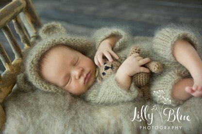 Baby Bear Hooded Overall Newborn Baby outfit, perfect as a photo prop.