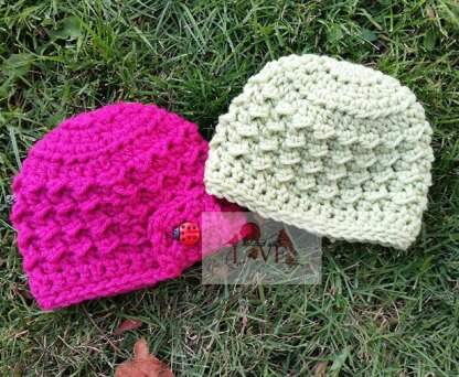 This hat can be made for a boy or a girl. You can add a button tab and decorative button if you like.