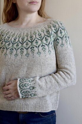 Newleaf is inspired by my beloved houseplants. This beginner-friendly sweater pattern is light weight, versatile and includes options for short or long sleeves. This piece is knit top down, seamlessly and in the round starting with a simple rolled neckline. You can easily add or subtract length if desired by trying on as you go. Fingering or sport weight yarn. Designed to be worn with 2-6” / 5-15 cm positive ease. Shown with 4” / 10 cm positive ease.