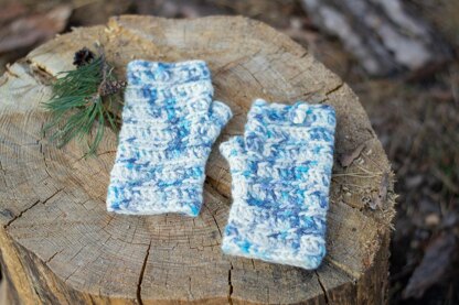 Crochet fingerless mittens pattern “NICE ICE” design includes: