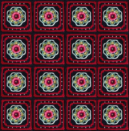 Night Poppy is a square, made with 3D technique, that can serve as the center of a cushion, a blanket or work several in different colors and join them. The model is made with Stylecraft special DK yarn. It can be made with Sheepjes Colour Crafter as both yarns has the same elasticity and caliber. Other yarns with similar characteristics are Studio Essential by Deramores and Astra by Patons.