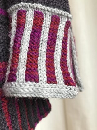 Niki is worked top down in the round with the Ziggurat method. The knitting begins with a regular longtail cast on for back and shoulders. Each shoulder is worked in turn as you begin to build sleeve caps for the set in sleeves. After the somewhat unusual and knifflige zigging and zagging, you work back and forth across all stitches for a few rows before the fronts are joined for knitting in the round.