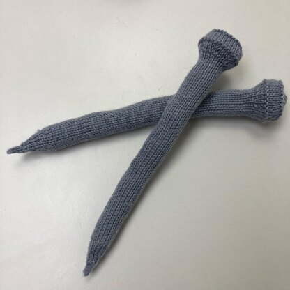 The ultimate knitter's tribute to Nine Inch nails: some knitted nine inch nails.... Knit in the round on 3mm dpns, and using only a small amount of gray sock yarn, this is the perfect small project for you! If you're a Nine Inch Nails fan, that is. It's very simple and very easy. You just need the following skills: