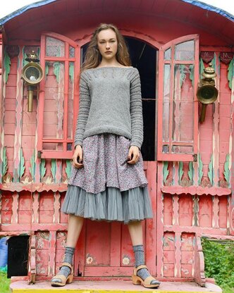 The structure of this fabulous jumper is an art form in itself. Although appearing seamless, there is one grafted join on the Niobe Jumper (which can be sewn if you prefer) and only the underarm seams to do up. Details include moss stitch edging and a simple, yet stunning, lace pattern.