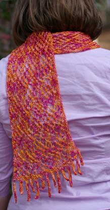 This mesh scarf could have been used by a particularly glamorous water maiden (a German Nixe or Nixie) to snare passing fishermen and women. The basic stitch is based on Barbara Walker’s Mermaid Mesh, but with tendrils at the short sides that gently wave like seaweed. The light bamboo yarn lends a light crunchy softness perfect for warding off the cool breath of the night – or overactive air conditioning.