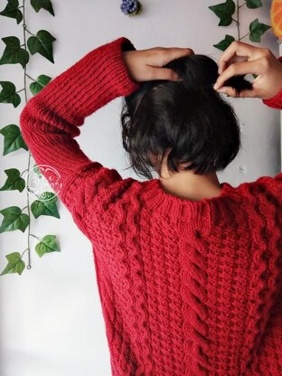 A simple free size (can be worn by people size S, M, or L, or maybe XL too) cable pullover that I can pull off without sewing! (Really, who like sewing?)