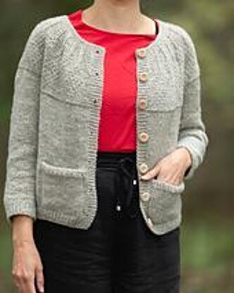 This cardigan is inspired by Christmas. When I was a child, we used to spend our Christmas time in our cabin, we wore woolen socks and garments knitted by my grandmother. The cardigan is knitted in Finnish wool that reminds me of those times. The textured yoke is like Christmas ornaments on a Christmas tree. Knitted from the top-down.