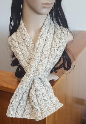 This Neck Scarf is worked in a lovely mock cable stitch. The 'keyhole' keeps the Scarf fastened and adds an interesting flair to the design. It is knitted in Kilcarra Tweed yarn, which is approximately a 12ply. For a matching family beanie, see my Presley pattern.