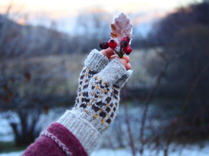 The Nogal Mitts are worked in the round, seamlessly, starting at the cuff, which can be worn down or folded up. The upper ribbing is also intended to be worn folded. But you can always unfold it to cover fingers on colder days.